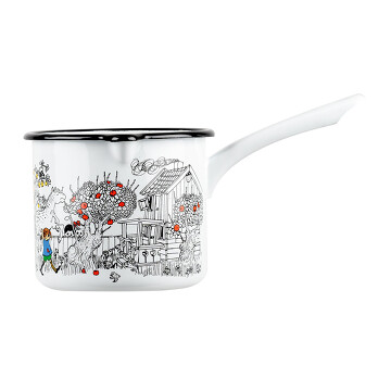 Финская компания Muurla, обладательница лицензии Moomin Characters, представляет качественную эмалированную посуду с изображениями очаровательных Муми-троллей . Посуда выполнена из углеродистой стали с двойным эмалевым покрытием. Эмалевое покрытие не вступает в какую-либо химическую реакцию с продуктами, не впитывает запахи, поэтому посуда пригодна не только для приготовления, но и для хранения пищи. Посуда прочная, функциональная и легкая, подходит для всех видов плит — от индукционных до открытого огня. Отличный подарок поклонникам Мумиков, как любителям домашнего уюта, так и любителям походов. Эмаль – стеклоподобный материал, используемый для покрытия, который может треснуть при сильном ударе, падении. В этом случае повреждение становится заметным на поверхности. При изготовлении изделия проходят ряд этапов ручной обработки, росписи, поэтому внешний вид может незначительно отличаться. Технологическое отверстие на внутренней стороне ручки не является браком, оно необходимо при производстве кружек. Объем кружки, указанный в карточке товара — это объем, заявленный производителем. При измерении объема кружка наполняется до краёв.