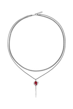Кулон с алым камнем на удлиненной цепочке TULIPONERO