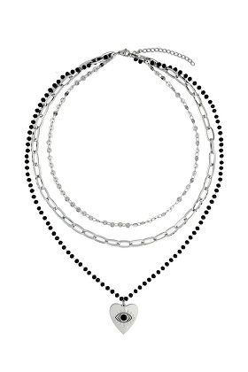 Колье многослойное с черными камнями и глазом TULIPONERO